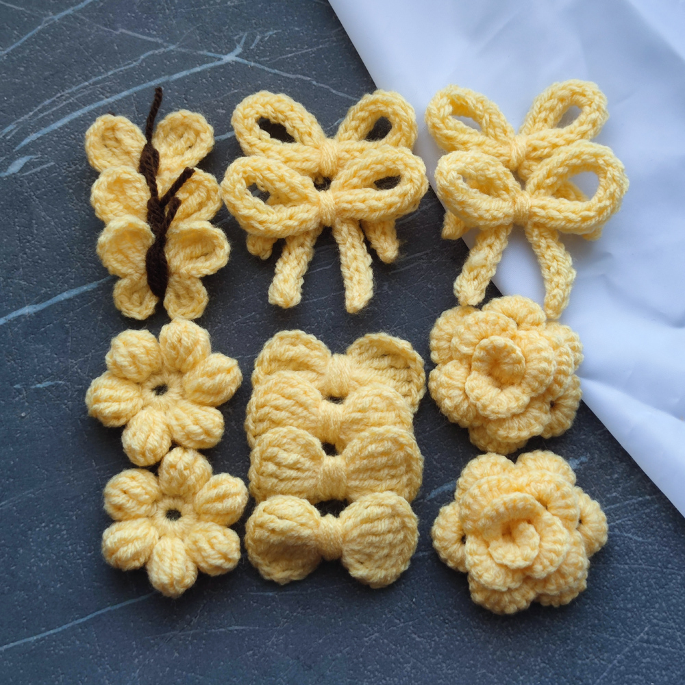 Бантик з хвостиками в'язаний жовтий (ручної работи).
