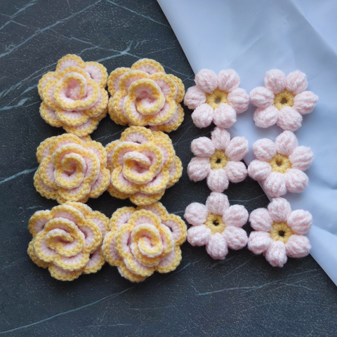 Квітка об'ємна в'язана світло-рожева з жовтим краєм (ручна работа).
