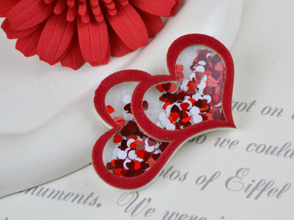 Патч-шейкер Два сердечка червоні оксамитові.