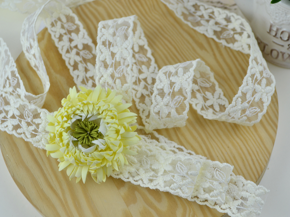 Мереживо Квіточки з хвилястим каєм кремові 28 мм (15).