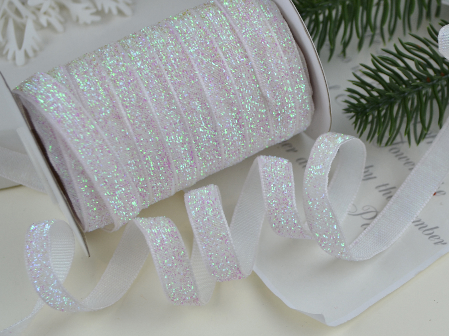 Стрічка оксамитова з люрексом біла з переливом ширина 1 см.
