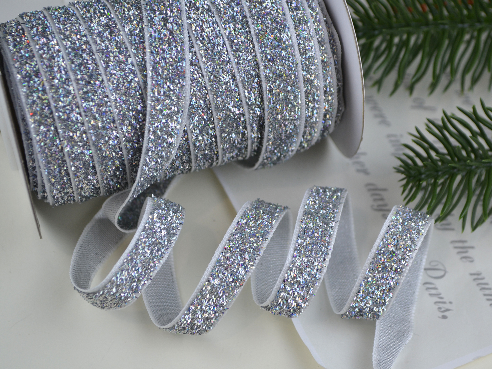 Стрічка оксамитова з люрексом срібна з переливом ширина 1 см.