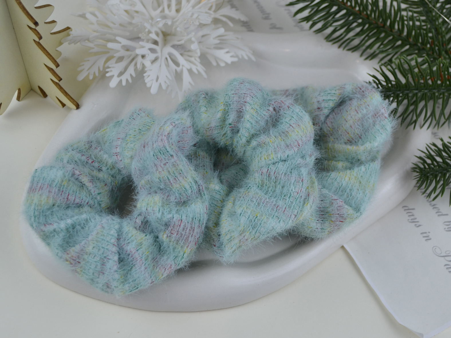 Резинки хутрові шиті зелений мультиколор.