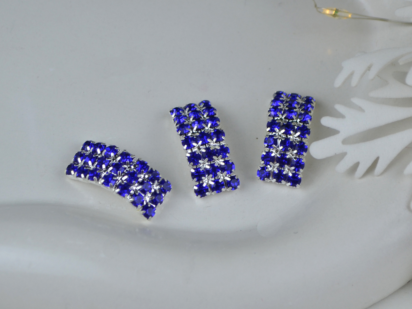 Декор Стразовий прямокутник з перетинкою синій.