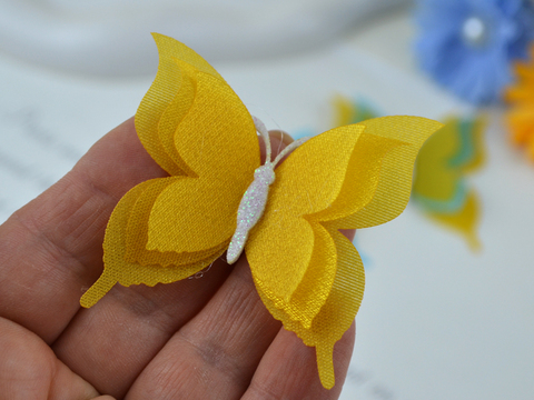 Заготовки для метеликів з блискучої органзи жовто-гарячі.