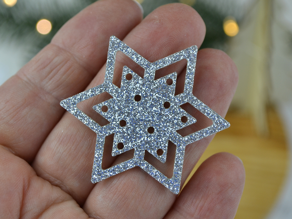 Вырубка Снежинка из глиттерного фетра голубая № 1