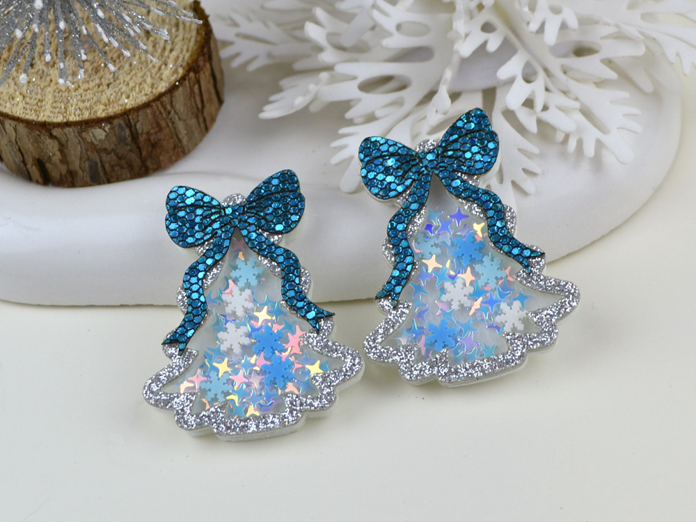 Патч шейкер Різдвяна ялинка срібна з блакитним бантиком.